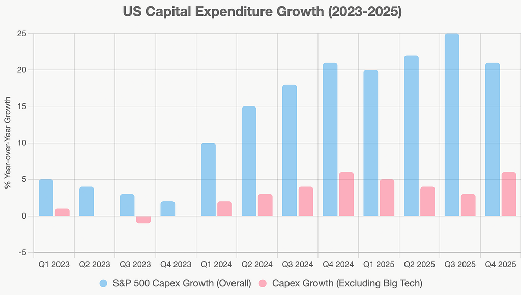 图2:美国资本支出增长(2023-2025,按季度,%同比)