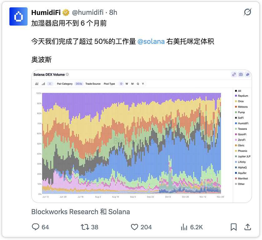 - HumidiFi 为超过 60% 的螺旋桨 AMM 活动提供支持。